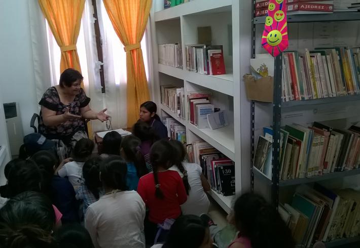 El Lic de Salterian interactua con usuarios de la biblioteca en el taller de lectura