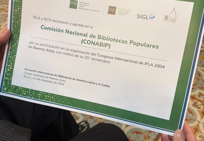 La CONABIP fue distinguida por su participación en la organización del primer Congreso Internacional de IFLA