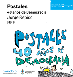 Jorge Repiso y REP crearon Postales 40 años de democracia, en donde reconstruyeron, mediante ilustraciones y texto, los sucesos más significativos de estos 40 años de democracia en la República Argentina.