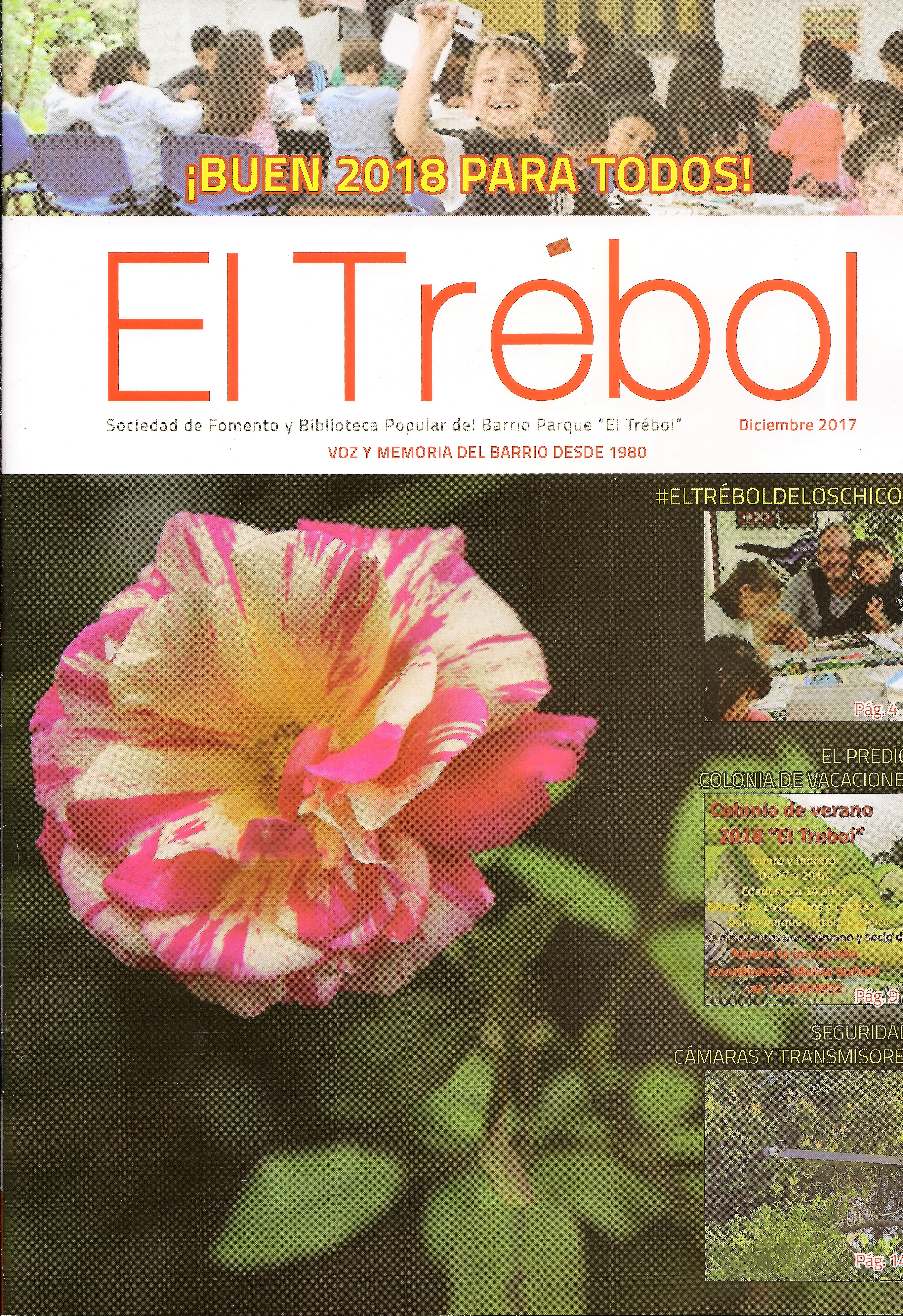Esta publicación institucional de la BP 4357-Sociedad de Fomento y Biblioteca Popular Barrio Parque El Trébol (Ezeiza, Provincia de Buenos Aires) es voz y memoria del barrio desde 1980. Se puede acceder para leerla, imprimirla, descargarla o compartirla desde este enlace.: https://issuu.com/sumar2/docs/trebol_diciembre2017
