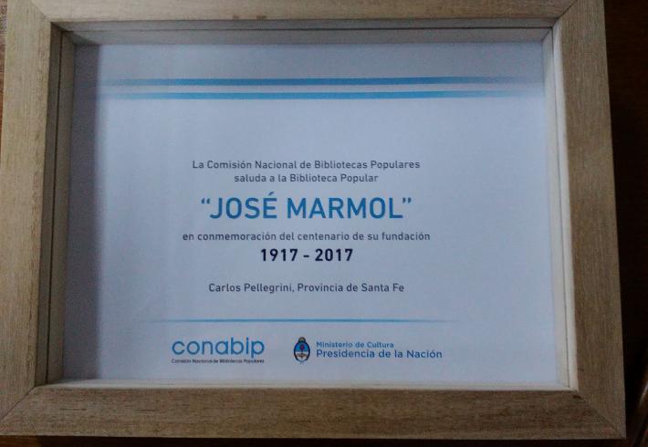 Reconocimiento de CONABIP por los 100 años de Biblioteca popular "José Mármol".
