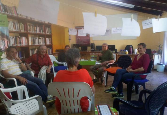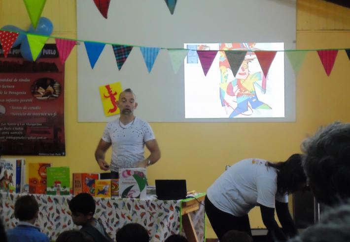 Abuelas Leecuentos de Lago Puelo acompañadas por Polo de la Biblioteca Pedagógica Siete y Fernanda...