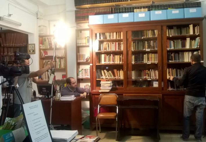 El director Oliver Kolker (Fermín, glorias del tango) estuvo en nuestra biblioteca rodando escenas...