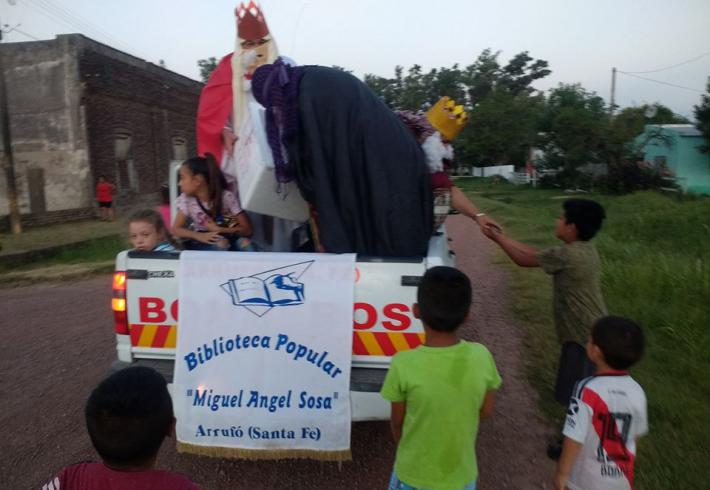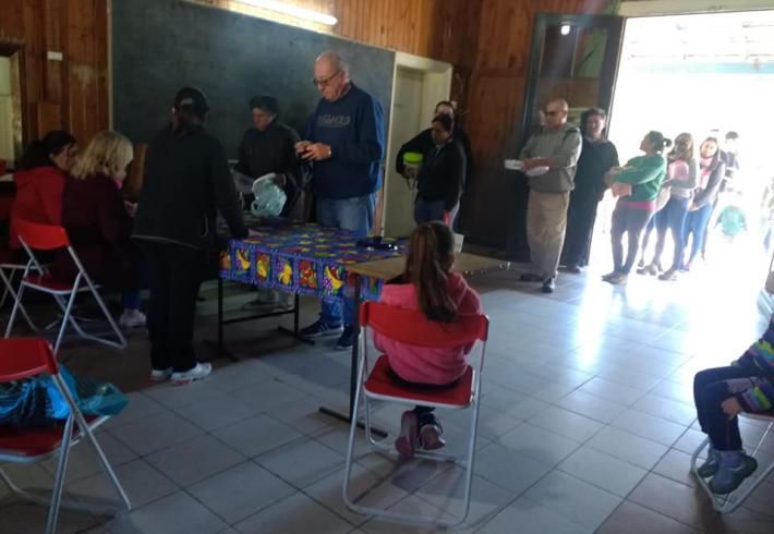 Junto a Bomberos Voluntarios entregando caramelos a los niños del pueblo.