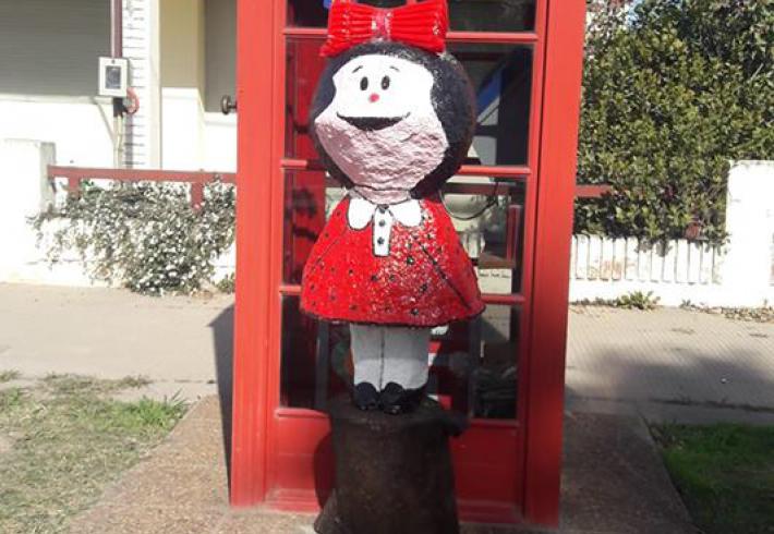 Mafalda personaje querido de nuestra literatura infantil fúe colocada en la Bibliocabina Pública,...