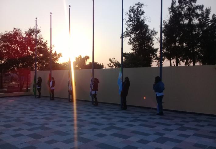 Izamiento y participación de la Biblioteca en el Acto Virtual por el 17 de Agosto.