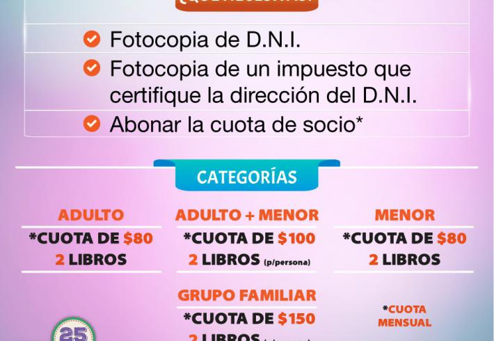 Te dejamos los requisitos para que sepas qué necesitas para asociarte a la Biblio!! Si tenés dudas...