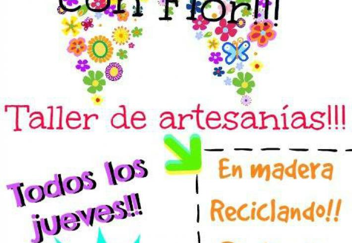 El taller es dado por la Señorita Flor, que les enseña a los niños a crear manualidades con...