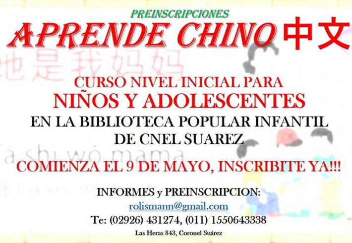 La BIBLIOTECA POPULAR INFANTIL DE CORONEL SUAREZ te invita a estudiar CHINO