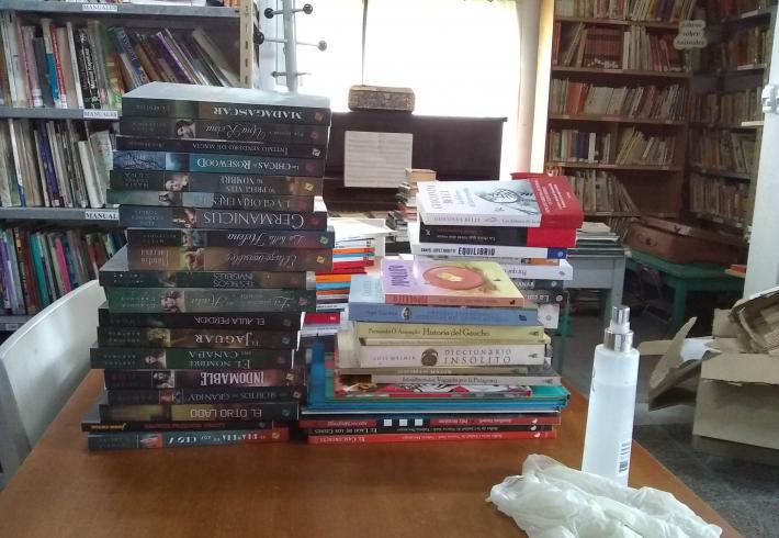Recibiendo las cajas con los libros comprados con el programa Libro %.