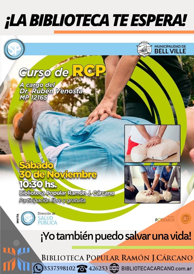 El día sábado 30 de noviembre a las 10.30 hs. se dictará un curso LIBRE y GRATUITO de RCP en la biblioteca. Estará a cargo del Medico Anestesiólogo Rubén Venosta MP.12165-MSP 4666. Ex jefe de Anestesia del Hospital Pasteur de la localidad de Villa María. Desde hace más de 20 años que se dedica a enseñar a la gente este procedimiento de reanimación cardiopulmonar en situaciones de emergencia para salvar vidas. Participo de Cursos de capacitación en AMERICAN HEART ASSOCIATION y FUNDACIÓN RESUCICOR. Es importante que seamos conscientes de que: “TODOS podemos salvar una vida si sabemos como” La biblioteca te espera. Gracias