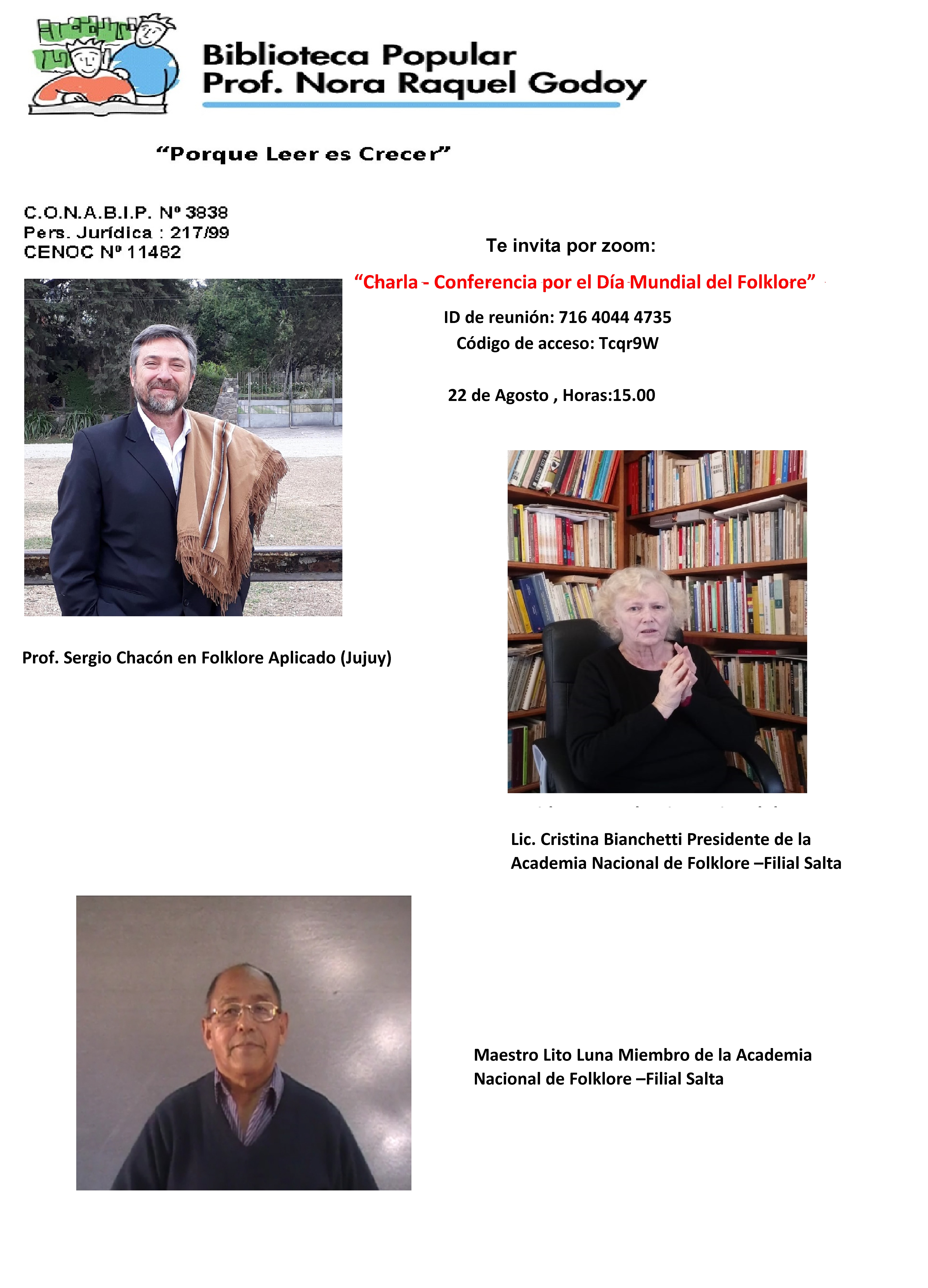 Lic. Cristina Bianchetti Presidente de la Academia Nacional de Folklore –Filial Salta