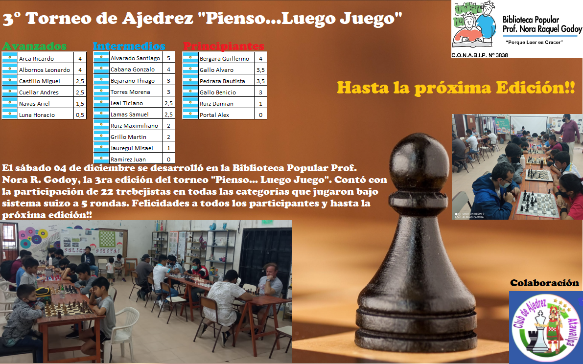 3° Edición Torneo Ajedrez "Pienso...Luego Juego"