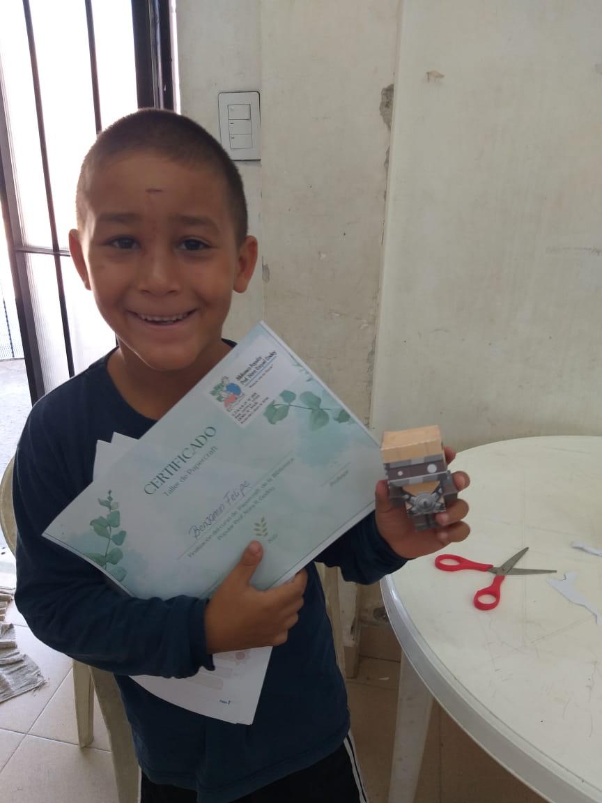 Taller de Papercraft desarrollado en las instalaciones de la Biblioteca . Una oferta a disposicion de los usuarios.Jugando con las formas geometricas e incentivando la paciencia en la actividad.La cual le sea traslada a otras (desempeño escolar por ejemplo).Generando lazos de amistad entre los participantes