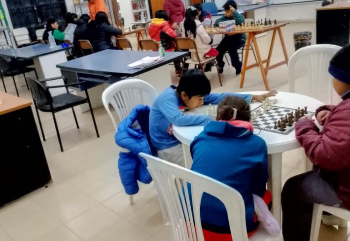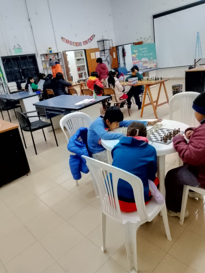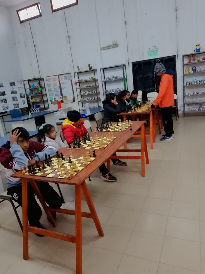 Taller de Ajedrez. A pesar del frió se desarrollo el mismo.El entusiasmo de los trebejistas en aprender es valorable. Y mas aun por los beneficios que aporta el mismo (disciplina ,creatividad, concentración, etc) Se compartió una chocolatada con bizcochuelo. Muchas gracias para los que lo hicieron posible.
