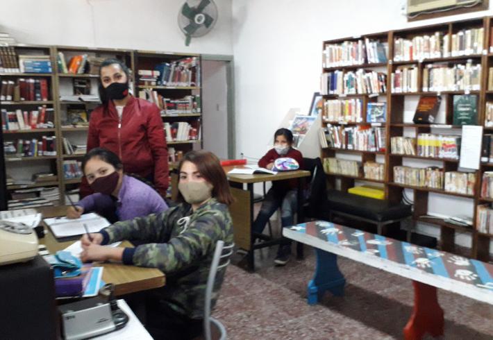 A niños de barrios vulnerables de nuestra comunidad, que carecen de Internet y espacio físico en sus domicilios, respetando el protocolo por covid 19 Magdalena Ramírez estudiante carrera docente de grado, coordina apoyo escolar a alumnos de la escuela primaria n° 6005-