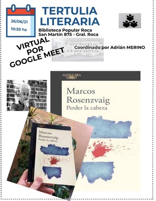 La entidad patagónica realiza Tertulias Literarias a través de plataformas virtuales. El 26 de junio de 2021 el encuentro cultural fue sobra la obra "Perder la cabeza" de Marcos Rosenzvaig. En este texto dos historias se entrelazan a través de la violencia política en Argentina y sus consecuencias: la tragedia de Marco Avellaneda, asesinado en el marco de la lucha entre Unitarios y Federales y la historia de Pablo, un militante político en la década de los años 70 que debe exiliarse en España por sufrir la persecución de los militares de la dictadura. Ambas vinculas a su vez con sus historias de amor.