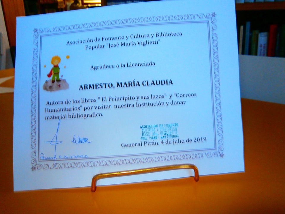Bienvenida Lic. María Claudia Armesto a la Biblioteca Pop. "José María Viglietti" de General Pirán.