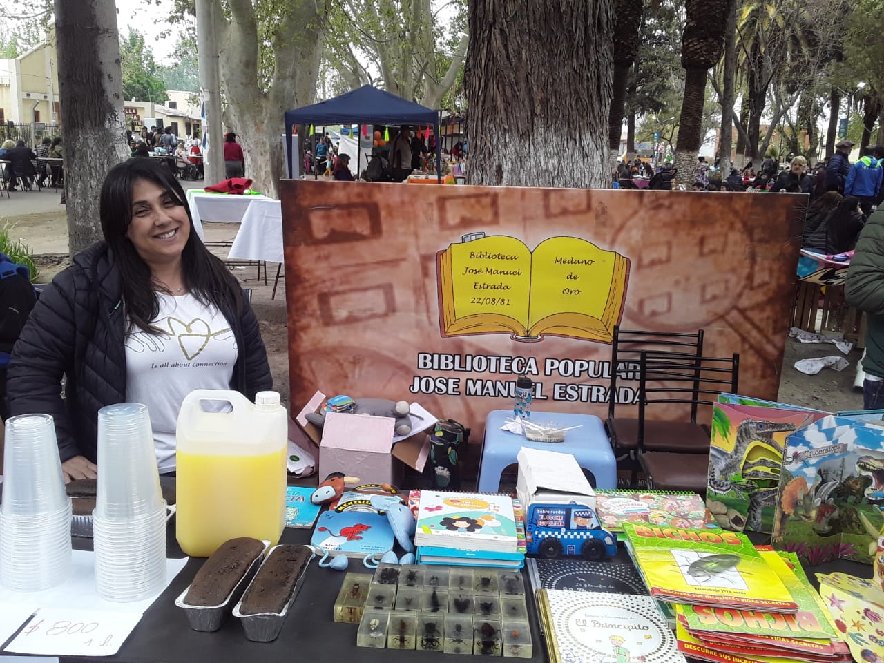 Nuestra biblioteca participó con un stand abierto donde desarrollamos espacio de dibujo y pintura libre para niños y niñas, suelta de libros y también venta de algunas artesanías con el propósito de recaudar fondos para la institución.