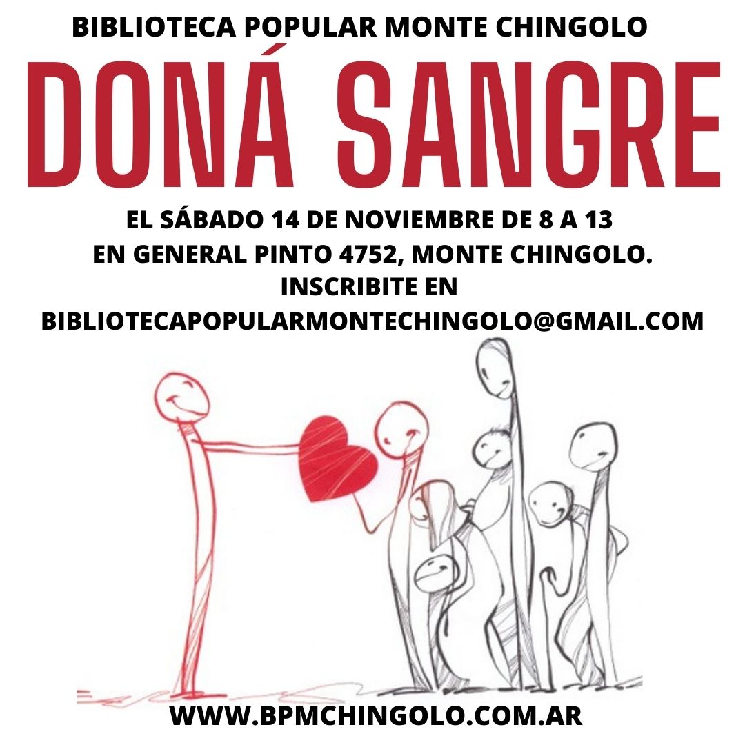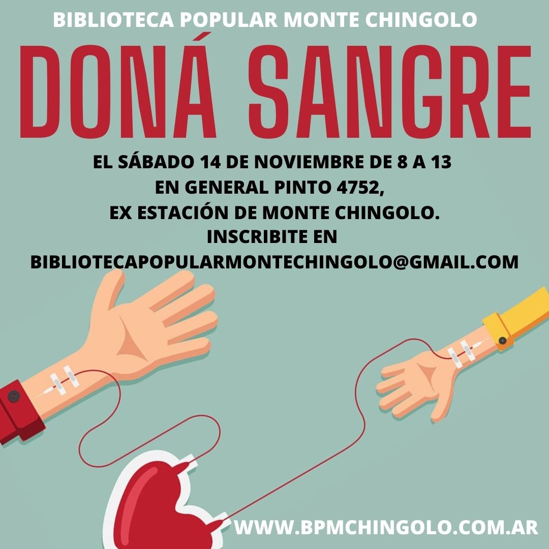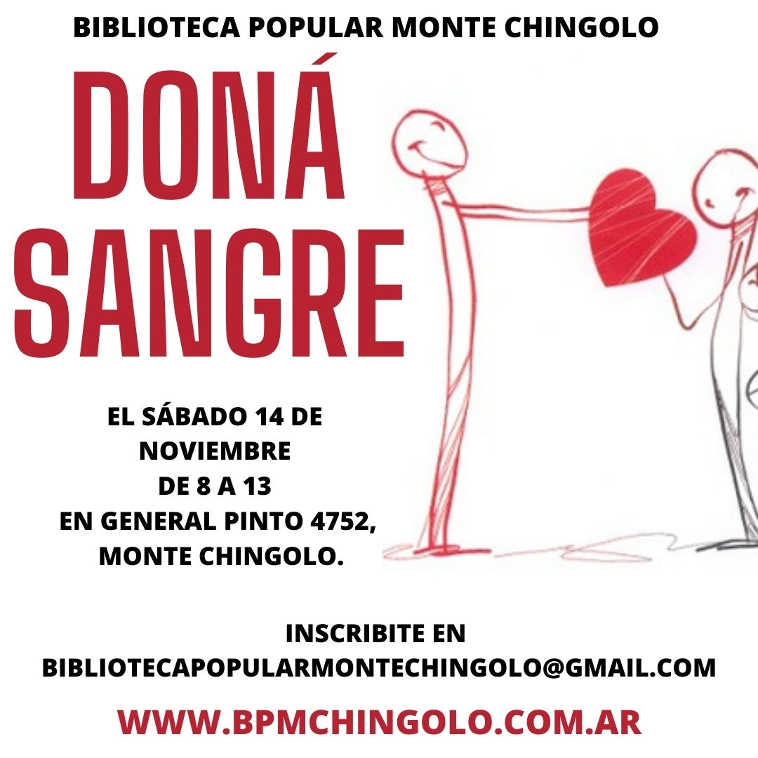 Los vecinos mayores de edad, que pesen más de cincuenta kilos y que deseen donar sangre deberán registrarse enviando un correo electrónico a bibliotecapopularmontechingolo@gmail.com para que se les asigne un turno en la jornada del sábado que se desarollará de 8 a 13 y será organizada por la Biblioteca junto al Centro Regional de Hemoterapia Fundosol.