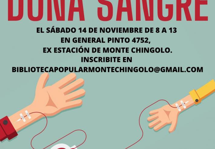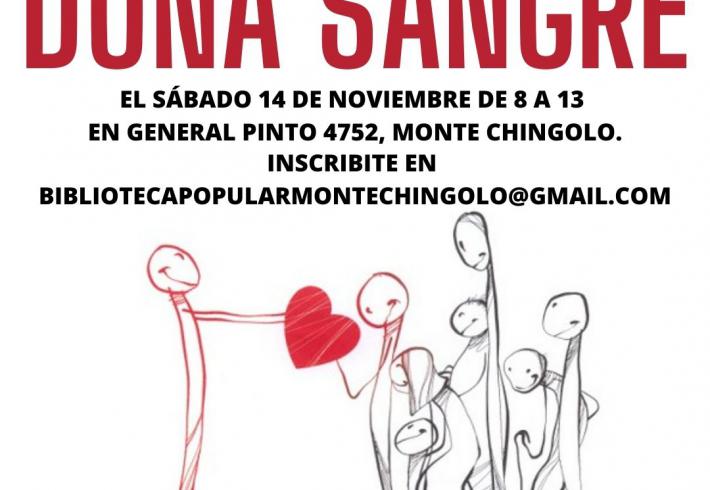 La Biblioteca Popular Monte Chingolo convoca a la comunidad a participar de la campaña de donación de sangre que se desarrollará el próximo sábado 14 de noviembre en la institución para abastecer a los hospitales de la región.