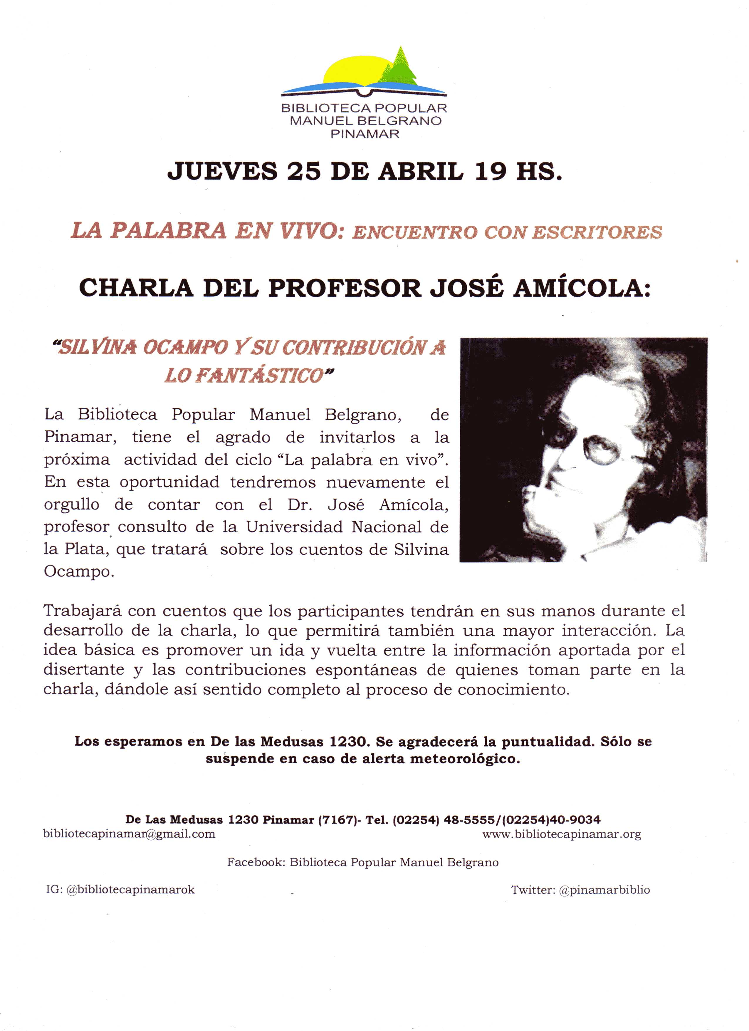 Charla sobre Silvina Ocampo del Prof. Amícola