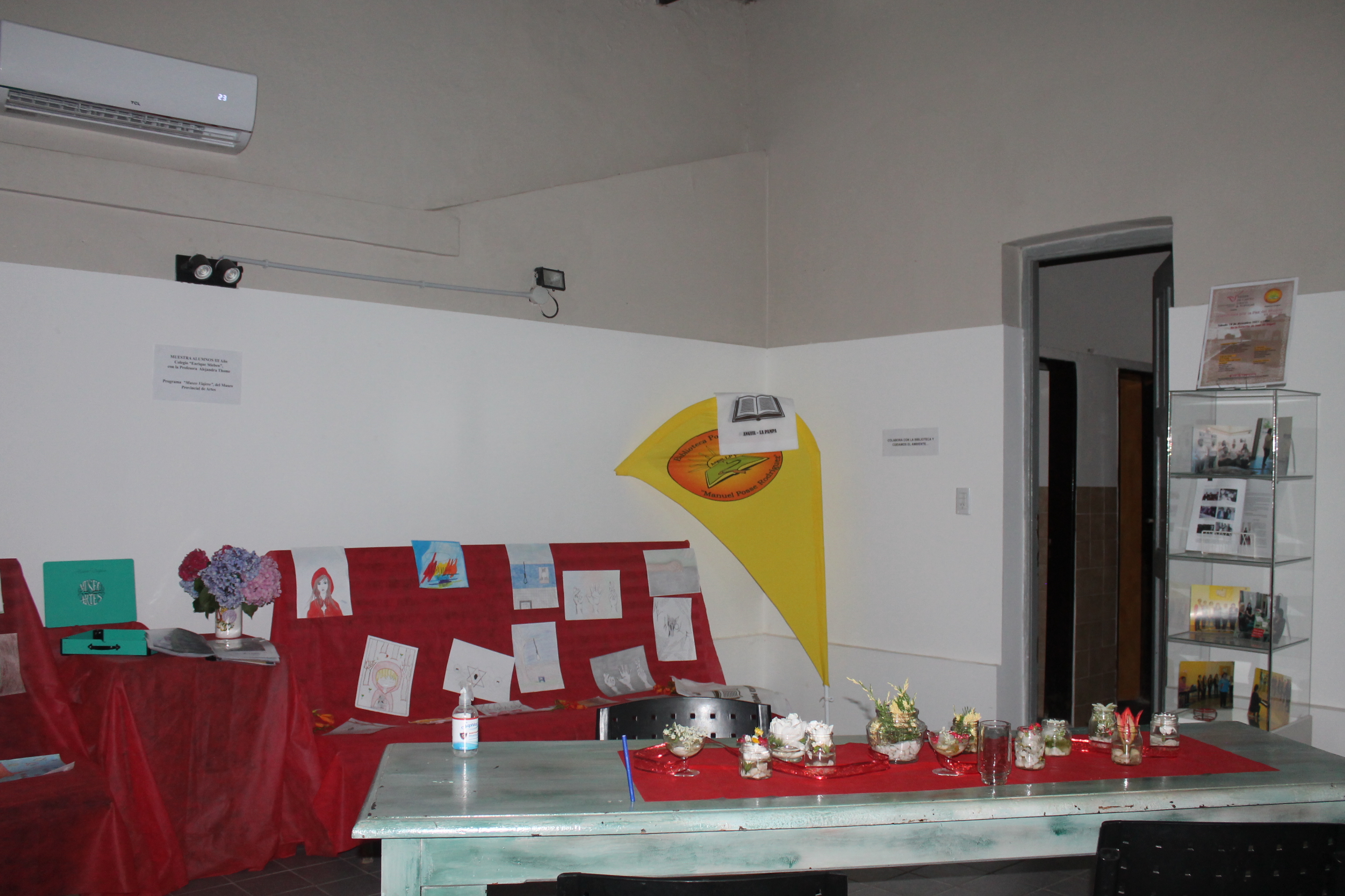 En el salón de entrada donde funciona la Biblioteca Popular "Manuel Posse Rodríguez" de Anguil La Pampa, se exhibe material