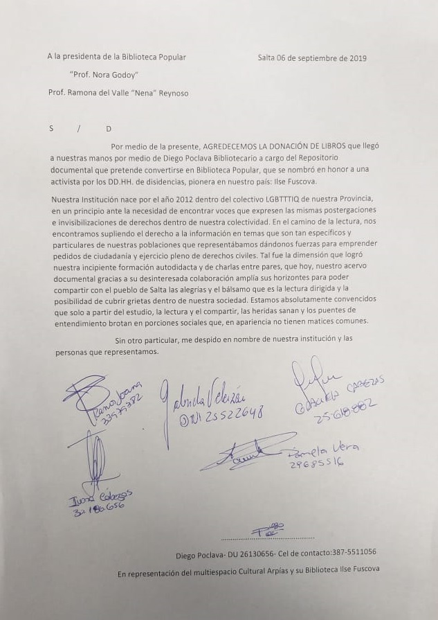 Donación de libros para la constitución de la futura Biblioteca Popular Ilse Fuscova.