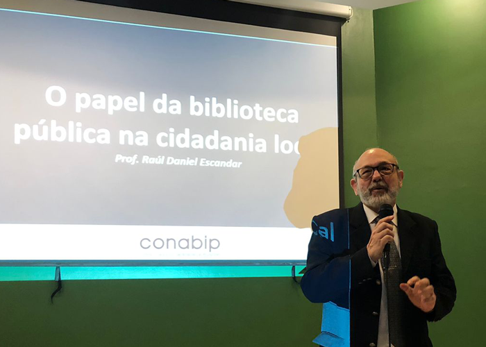 Escandar dictó una conferencia sobre la Red de Bibliotecas Populares Argentinas, haciendo hincapié en la diversidad de acciones que las más de 1500 bibliotecas de la red realizan en sus comunidades.