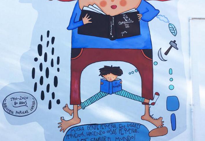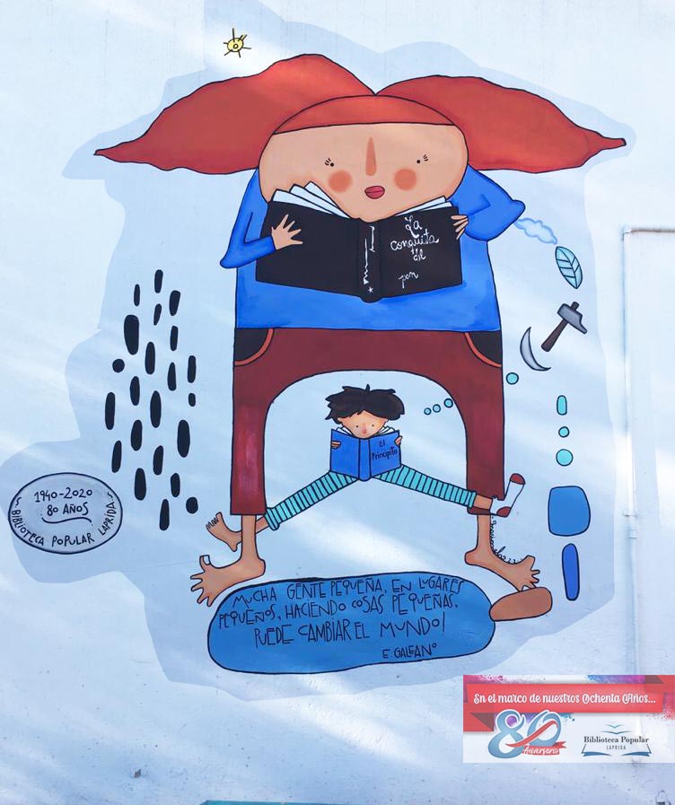 Entre los adultos la ganadora por elección del público fue Marianela Collman con el mural que realizó en el patio de la Biblioteca.