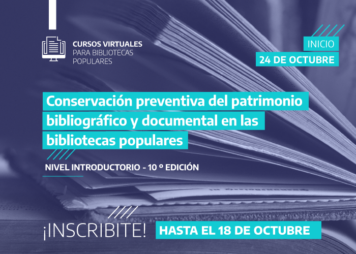 En esta oportunidad se abordará la temática de la conservación patrimonial, es decir, cuáles son las necesidades físicas de los objetos para optimizar su preservación en el tiempo, y cuáles son las tareas y cuidados que se pueden encarar desde la biblioteca para lograrla.