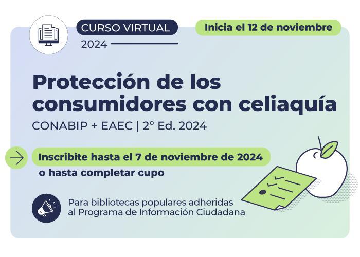 La difusión e información sobre la celiaquía son centrales en el diagnóstico y tratamiento de la enfermedad. Las personas que la padecen tienen necesidades diferentes relacionadas con la dieta que ingieren, por ello está regulado el acceso a opciones alimentarias “sin gluten” de toda persona con celiaquía, cualquiera sea el lugar, institución o ámbito en el que desarrolle su actividad cotidiana. Con el objeto de alcanzar un régimen más eficaz de protección a los derechos de los consumidores celíacos, se ofrece el presente curso a los interesados en la temática.