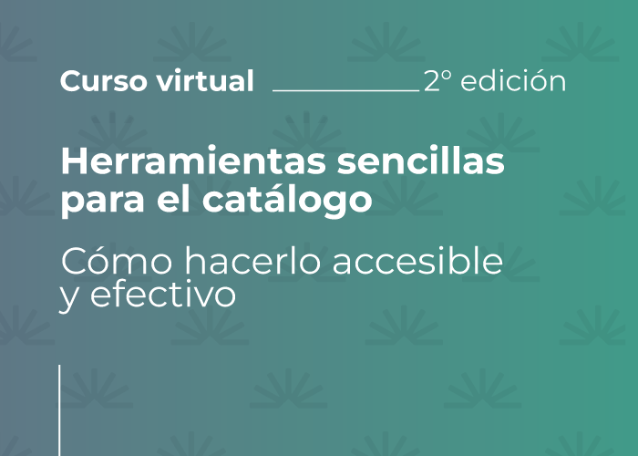 El objetivo del curso es facilitar herramientas y conceptos para posicionar al catálogo de una biblioteca popular como eje, centro y elemento indicador de su patrimonio. Si bien la catalogación puede resultar una tarea tediosa y difícil por la complejidad que reviste la edición de libros, con esta propuesta se pretende aportar los conocimientos indispensables para que el catálogo sea completo y abarcativo, pudiéndose visibilizar y valorar el patrimonio documental de la biblioteca.