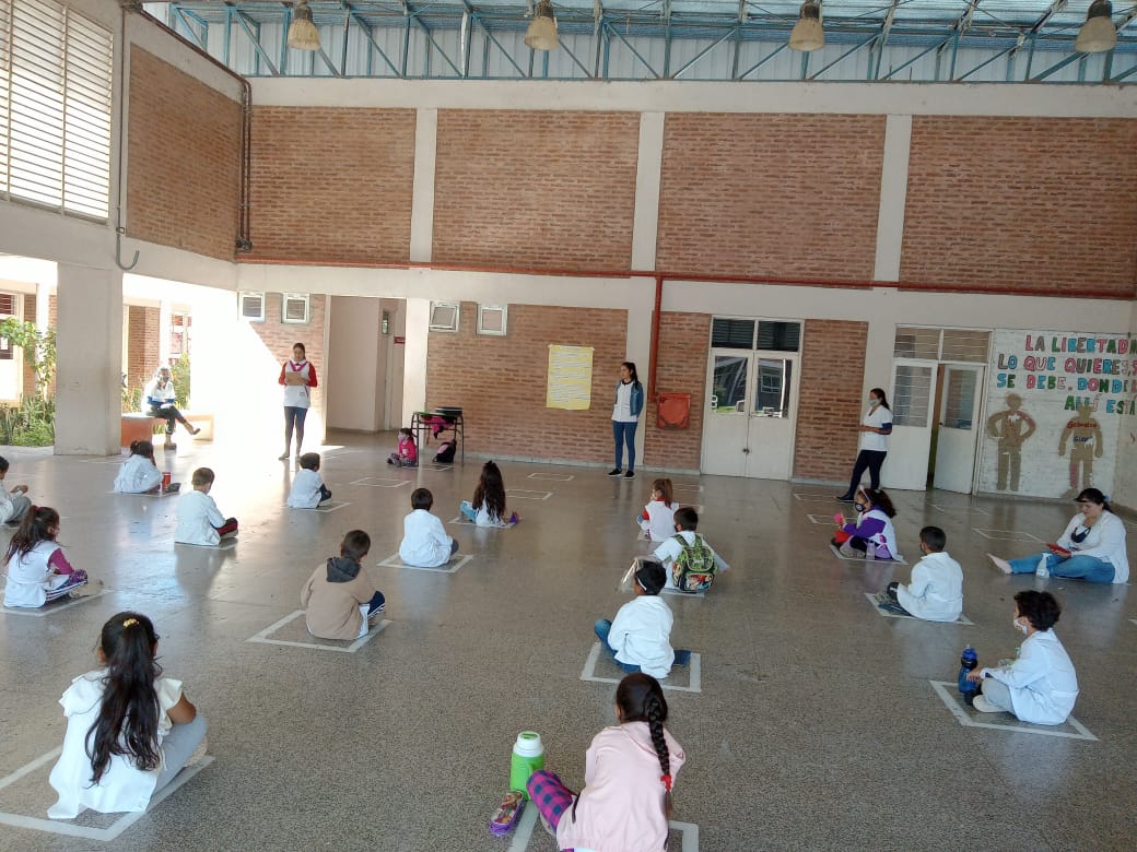 con Alumnos de 1er. y 2do. Grado de la EEP N° 1.063 de la localidad de V. Berthet cumpliendo el Protocolo