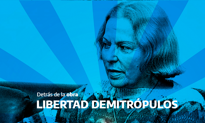 Libertad Demitrópulos nació en el departamento jujeño de Ledesma en 1922. A los 18 años comenzó a trabajar como maestra de escuelas en Jujuy hasta que en 1940 viaja a Buenos Aires para estudiar letras. En 1978 se publica una de sus novelas más importantes, La flor de hierro y, tres años más tarde, Río de las congojas. También escribió la biografía de Eva Perón a quien conoció trabajando en el hogar escuela que llevaba su nombre. Conocé más sobre la vida de Libertad Demitrópulos en Detrás de la obra.