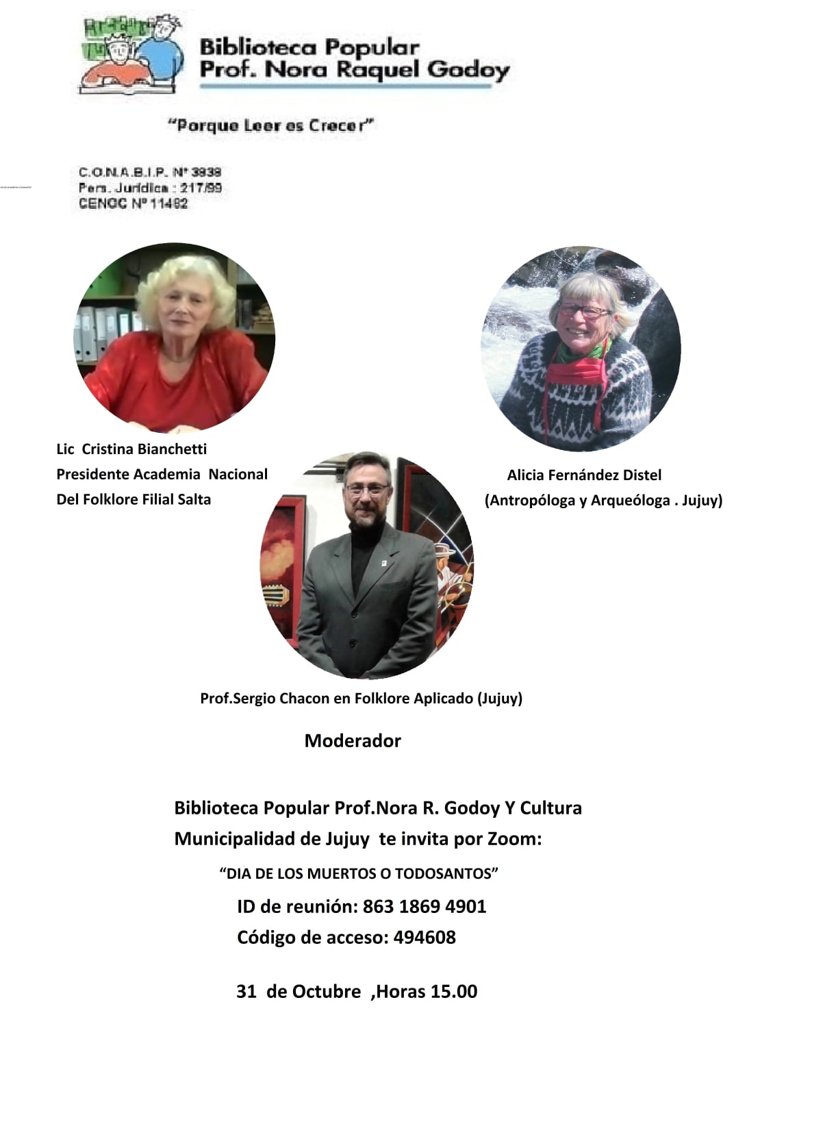 Descripción:Biblioteca Popular Nora Godoy y Cultura Muni Jujuy le está invitando a una reunión de Zoom programada.