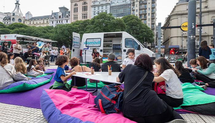 Allí se hizo presente el bibliomóvil de la CONABIP que participó de la celebración con la presencia de más de 10.000 personas que disfrutaron durante la tarde en la explanada del Palacio Libertad.