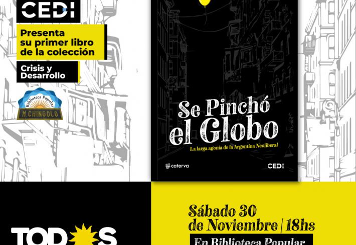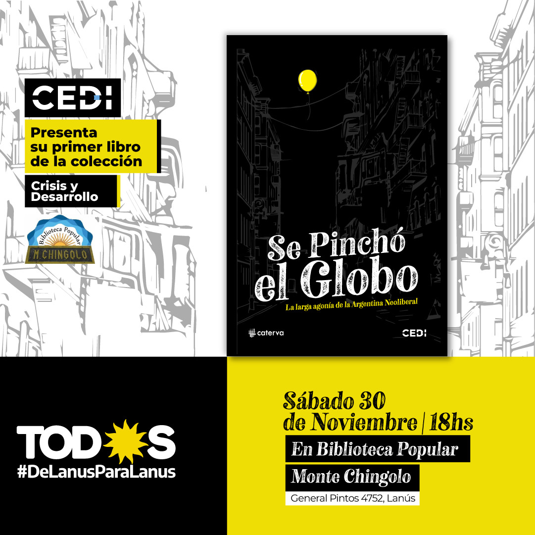 El Centro de Estudios para el Desarrollo Integral (CEDI) presentará su libro “Se pinchó el globo. La larga agonía de la Argentina Neoliberal” este sábado 30 de noviembre a las 18 en la Biblioteca Popular Monte Chingolo.