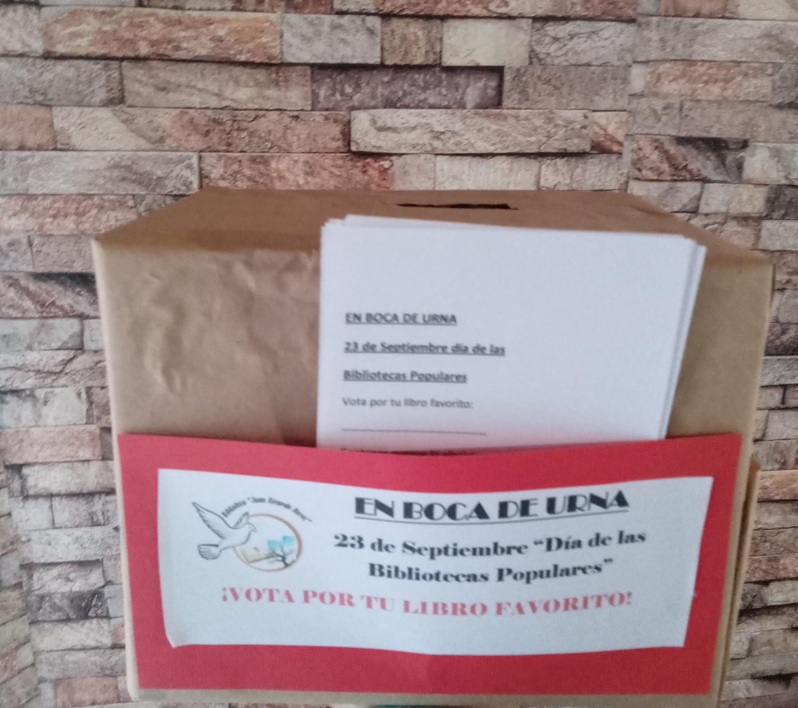 BP JUAN RICARDO NERVI| Desde la biblioteca haremos circular urnas en diferentes lugares del pueblo para que la población complete una hoja con el libro favorito y porque lo eligió. El viernes por la tarde se abrirán en la biblioteca y se confeccionaran historias con los títulos.