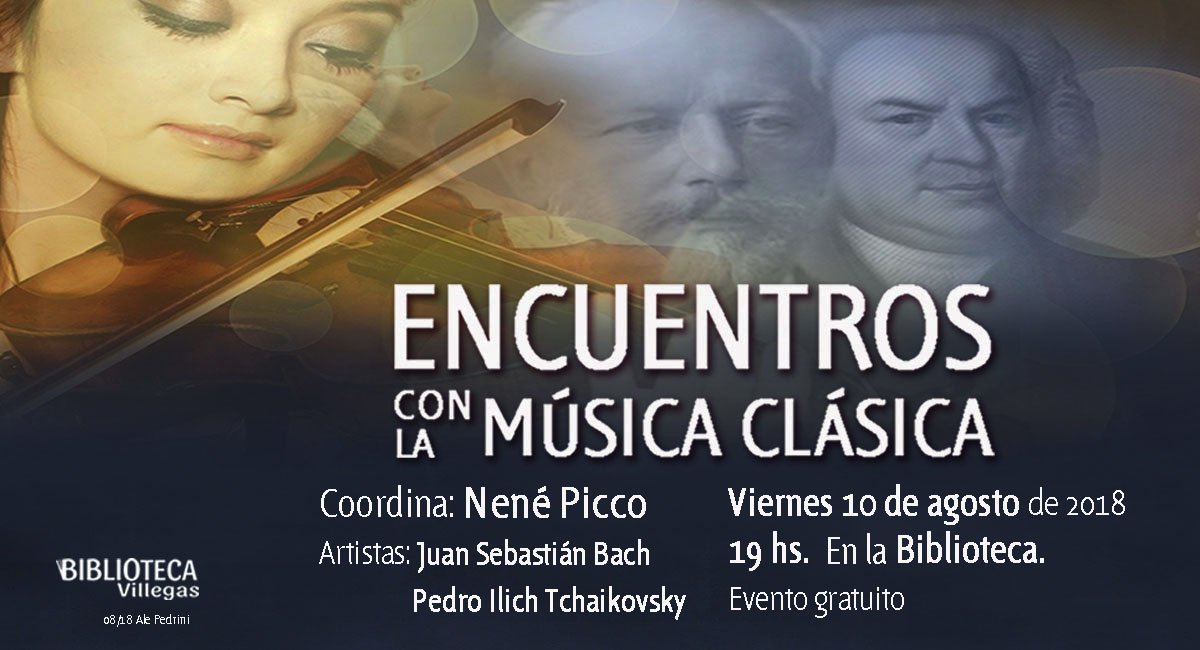 :: MÚSICA CLÁSICA Con la presentación de Nené Picco y, en este encuentro, la música de Juan Sebastián Bach y Pedro Ilich Tchaikovsky. Viernes 10 de agosto, a las 19.00 hs. en la Biblioteca. ¡Los esperamos! [Actividad gratuita]