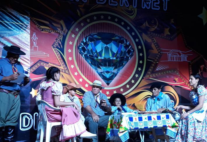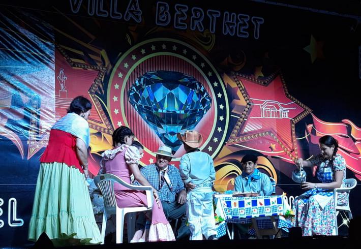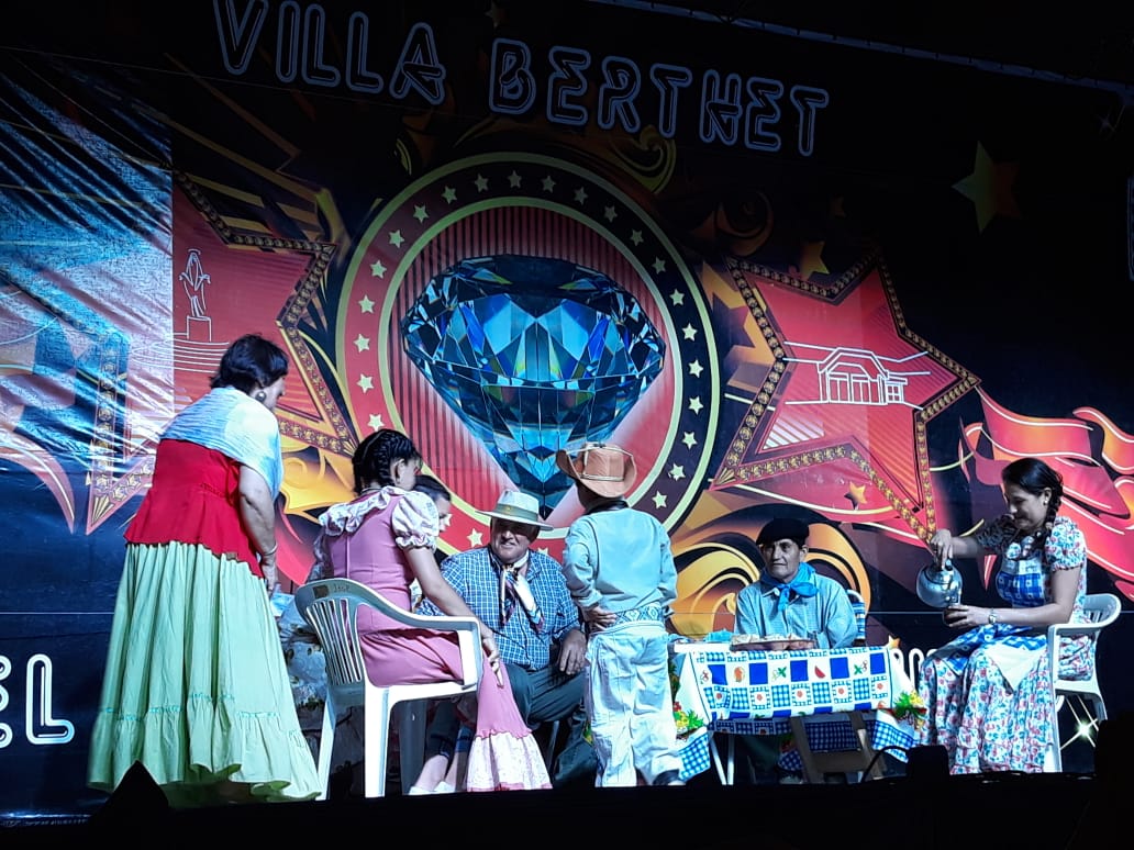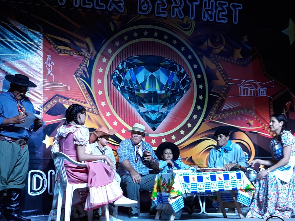 Integrantes de la Asociacion Amigos, personal bibliotecario y directivo de la Biblioteca Pública Popular Dr. Jose Ingenieros, participaron de la 2° edición de la Expo-Educativa desarrollada en el marco de los festejos de un nuevo aniversario de Villa Berthet. En ésta aportunidad el poeta de la localidad Transito Baldonado recitó su poema "mate amigo" que fue representado por actores y bailarines que acompañaron la ocación.