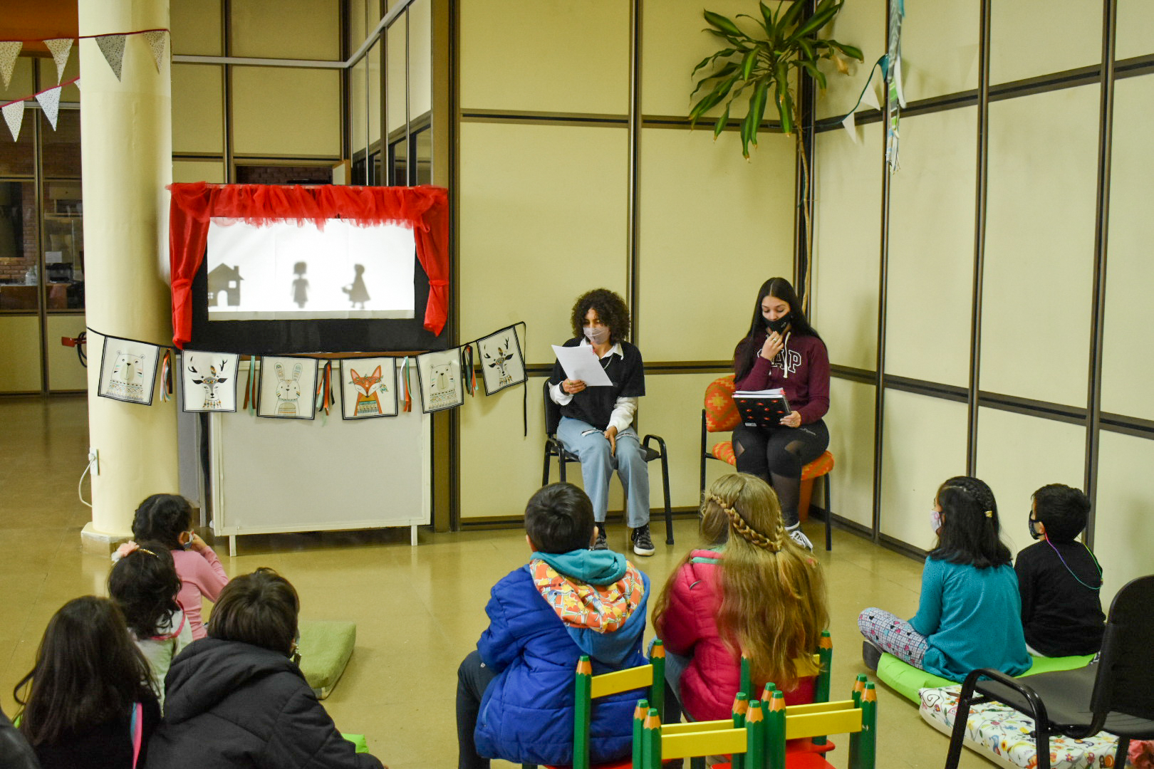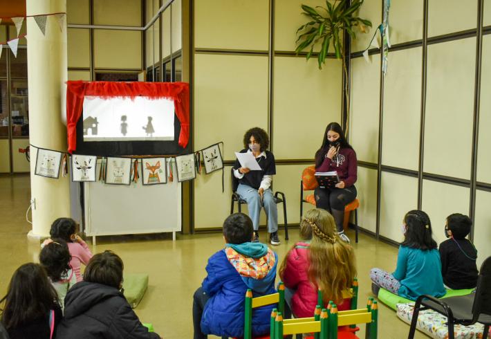 A la participación con el Teatro de Sombras del grupo “Juventud lectora”, estudiantes del 5to año del IMA, en el marco del trayecto de la materia Proyectos Solidarios que realiza en la biblioteca, a la profesora Claudia Williams y la bibliotecaria Dalina Dubini .
