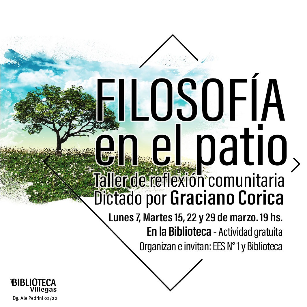 Este martes Graciano Corica vuelve con su propuesta abierta a toda la comunidad: Filosofía en el patio, taller de introducción al pensamiento filosófico. Sin límites de edad ni de formación, nos animamos a dialogar sobre sentires y pensares los martes a las 19 hs, organizado por EES N° 1 y Biblioteca. ¡Los esperamos! [Actividad gratuita]