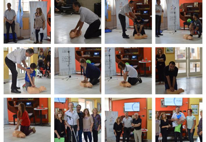 En horas de la mañana se llevó a cabo en la Biblioteca el curso de RPC a cargo del Dr. Rubén Venosta, cuyo lema fue“YO TAMBIÉN PUEDO SALVAR UNA VIDA”.