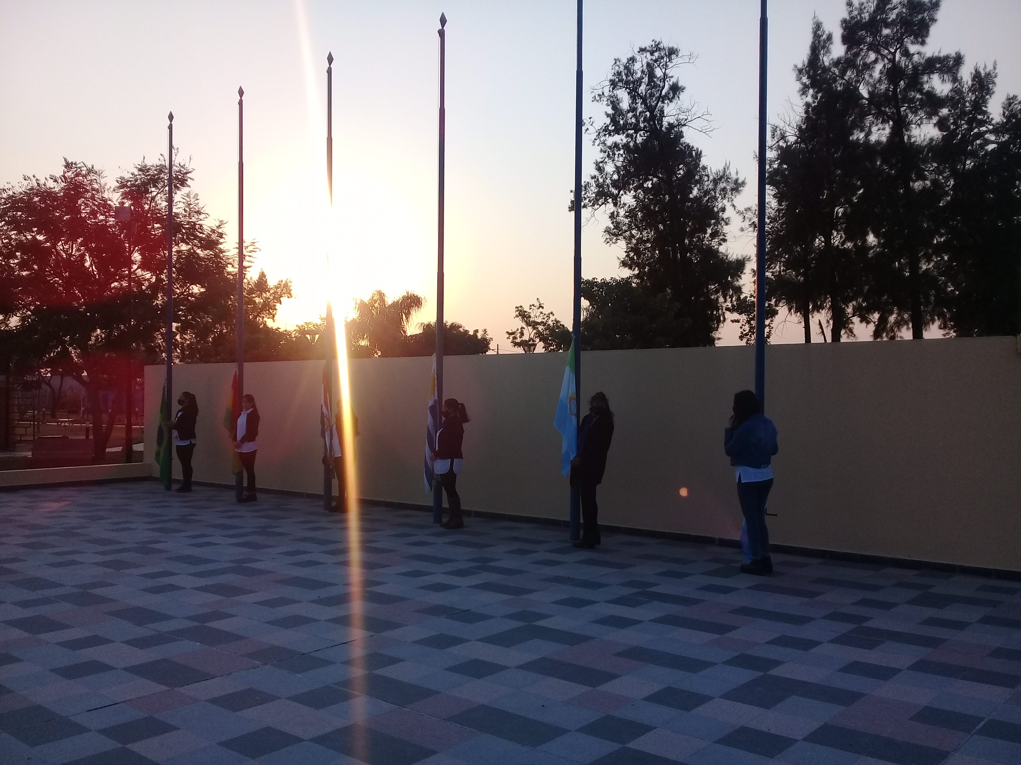 Izamiento y participación de la Biblioteca en el Acto Virtual por el 17 de Agosto.