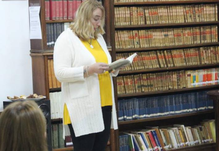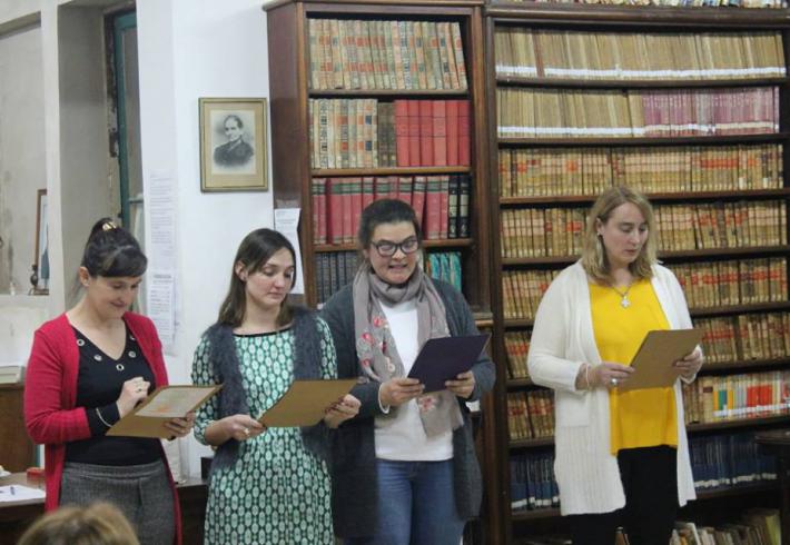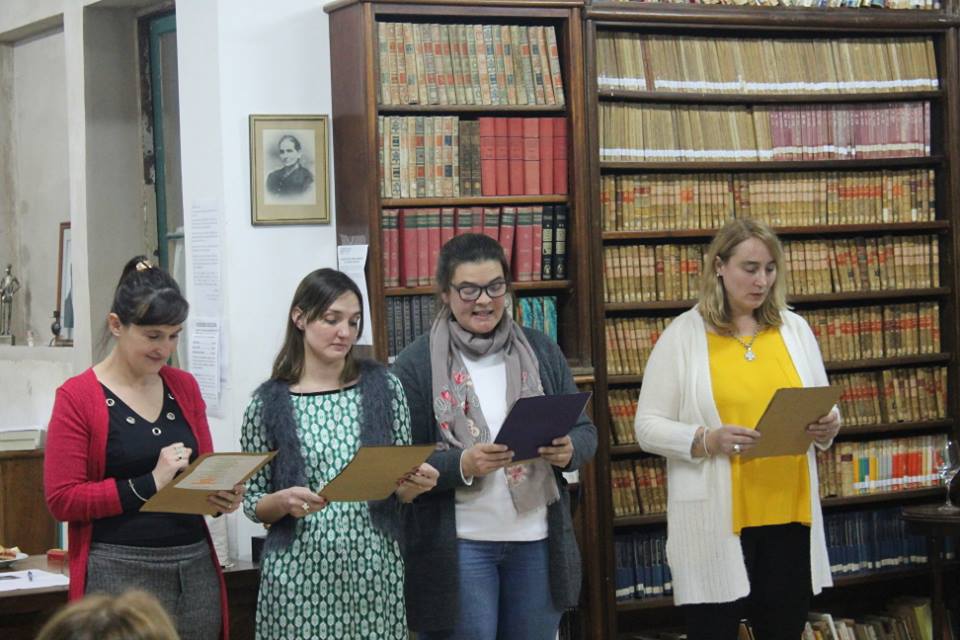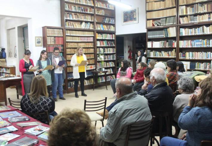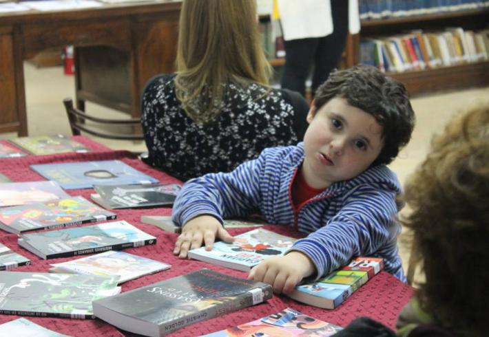 El Programa Libro% es una de las acciones más importantes que la CONABIP viene desarrollando desde 2005, que se realiza en el marco de la Feria Internacional del Libro de Buenos Aires. Por trece años consecutivos la participamos, junto casi un millar bibliotecas populares provenientes de todos los rincones del país, que llegamos a la Feria y durante los tres días que dura el encuentro dirigentes y bibliotecarios participamos de estas jornadas en las que, además de compartir experiencias, a través de un subsidio podemos adquirir material bibliográfico a precios especiales que numerosas editoriales presentes en la feria le ofrecen a las Bibliotecas. En nuestro aso una vez que se realiza todo el trabajo técnico, siempre organizamos una presentación del material adquirido. En esta ocasión la propuesta fue que el público disfrute de cuentos cortos, leídos por bibliotecarias de las escuelas de la ciudad.
