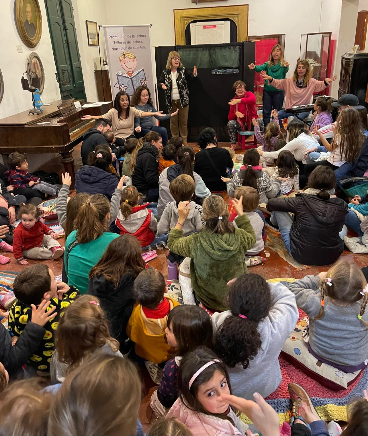 De la mano de Celina y Lucia la presentación comenzó con una obra de títeres, y luego continuamos divirtiéndonos con los cuentos, juegos y canciones que nos presentaron Delfina, Marita y Roxana