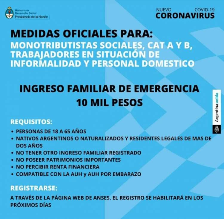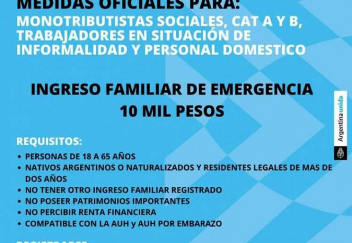 Este beneficio está destinado a trabajadores y trabajadoras informales; trabajadores y trabajadoras de casas particulares; monotributistas sociales; y monotributistas de las categorías A y B.