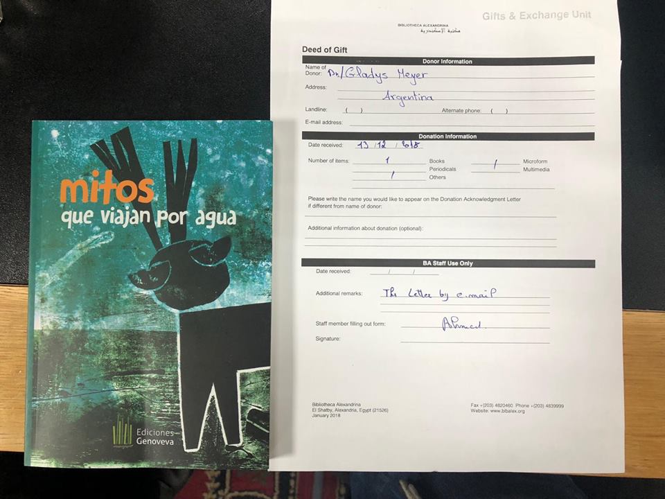La Biblioteca Popular Infantil de Coronel Suarez viajo a Egipto!!! Llegó a la Biblioteca de Alejandria!!!! MITOS QUE VIAJAN POR AGUA Este libro tiene un valor especial, ya que fue escrito por comunidades de Argentina y Colombia Ediciones Genoveva Gracias Nesreen Ahmed Abdel Hamid por hacer realidad este sueño.