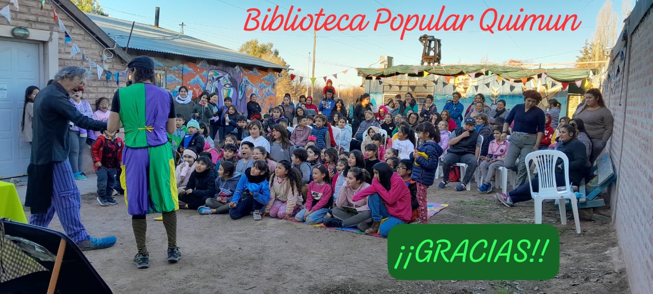 BP QUIMUN | La biblioteca visita la Escuela, presentación de la mano de Cilantro Clown. Charla sobre funcionamiento de la biblioteca popular. Compartiremos lectura de cuentos, juegos, proyección de videos de Canticuénticos, acompañado del libro físico. Cierre con una ronda de devoluciones.